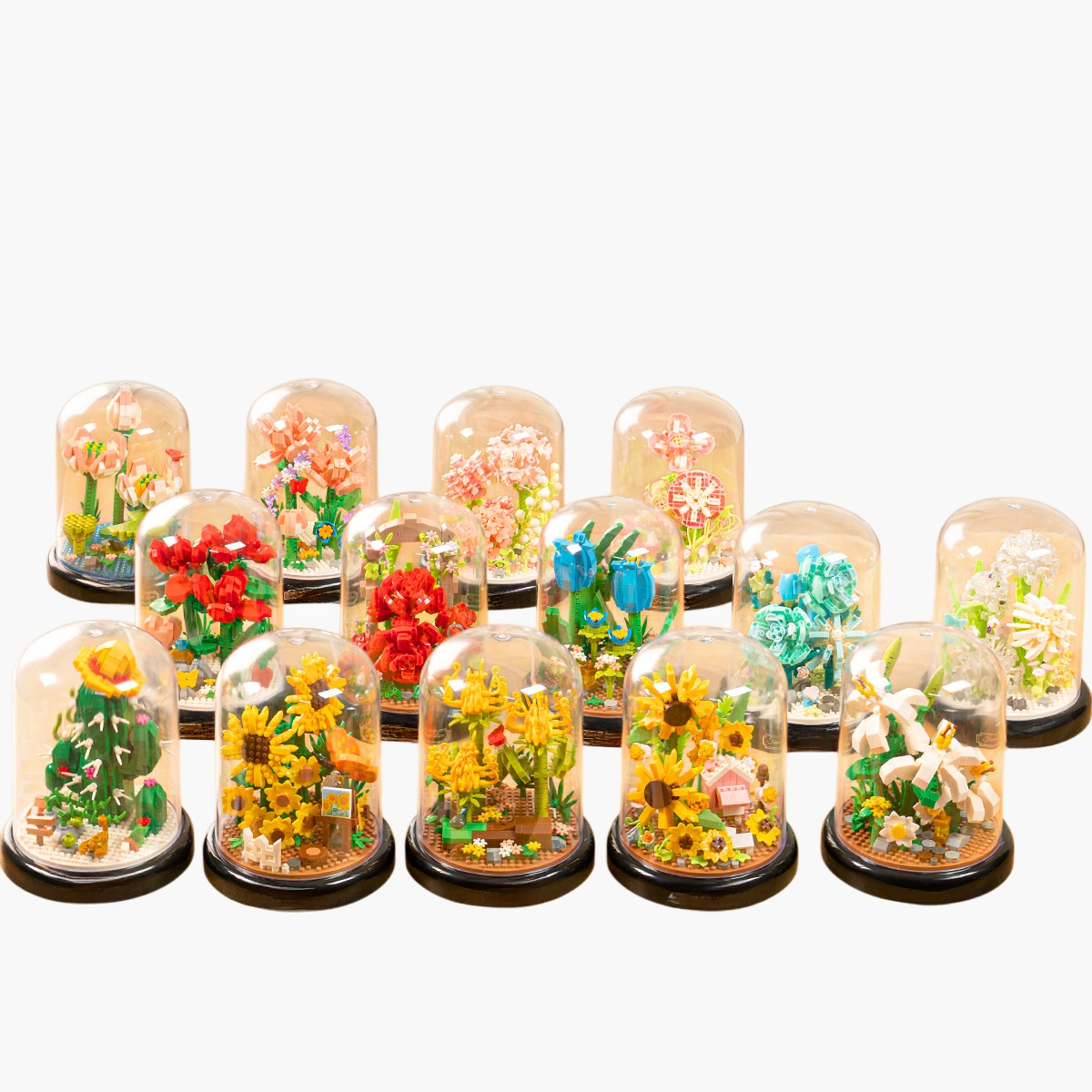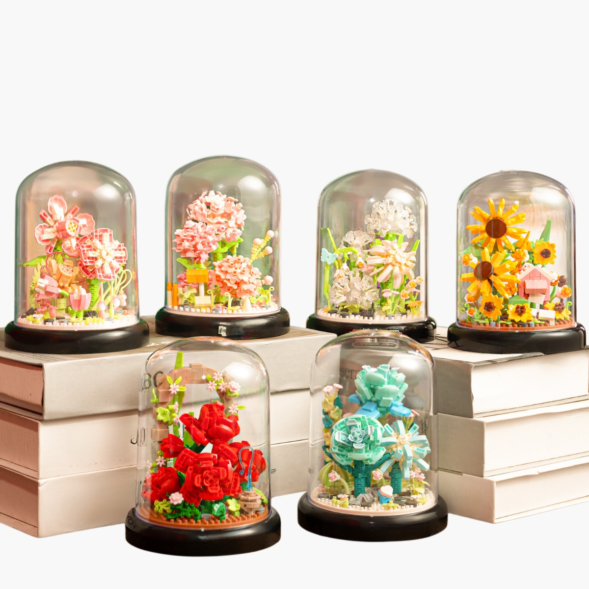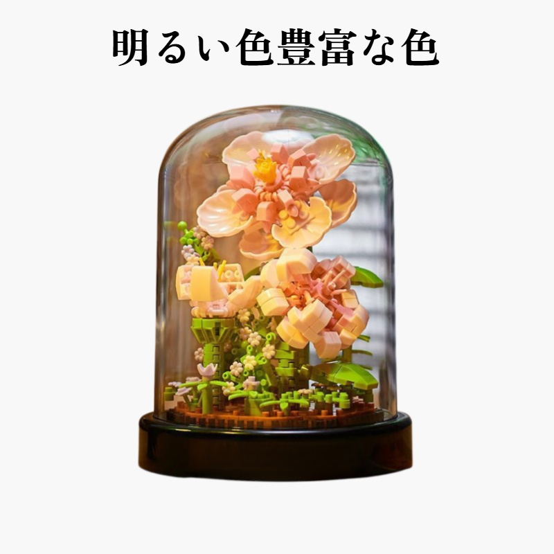 積み木の花のデスクトップオーナメントは、木製の積み木で花を表現。デスクや棚の装飾に最適。組み立て簡単、インテリアに馴染むデザイン。