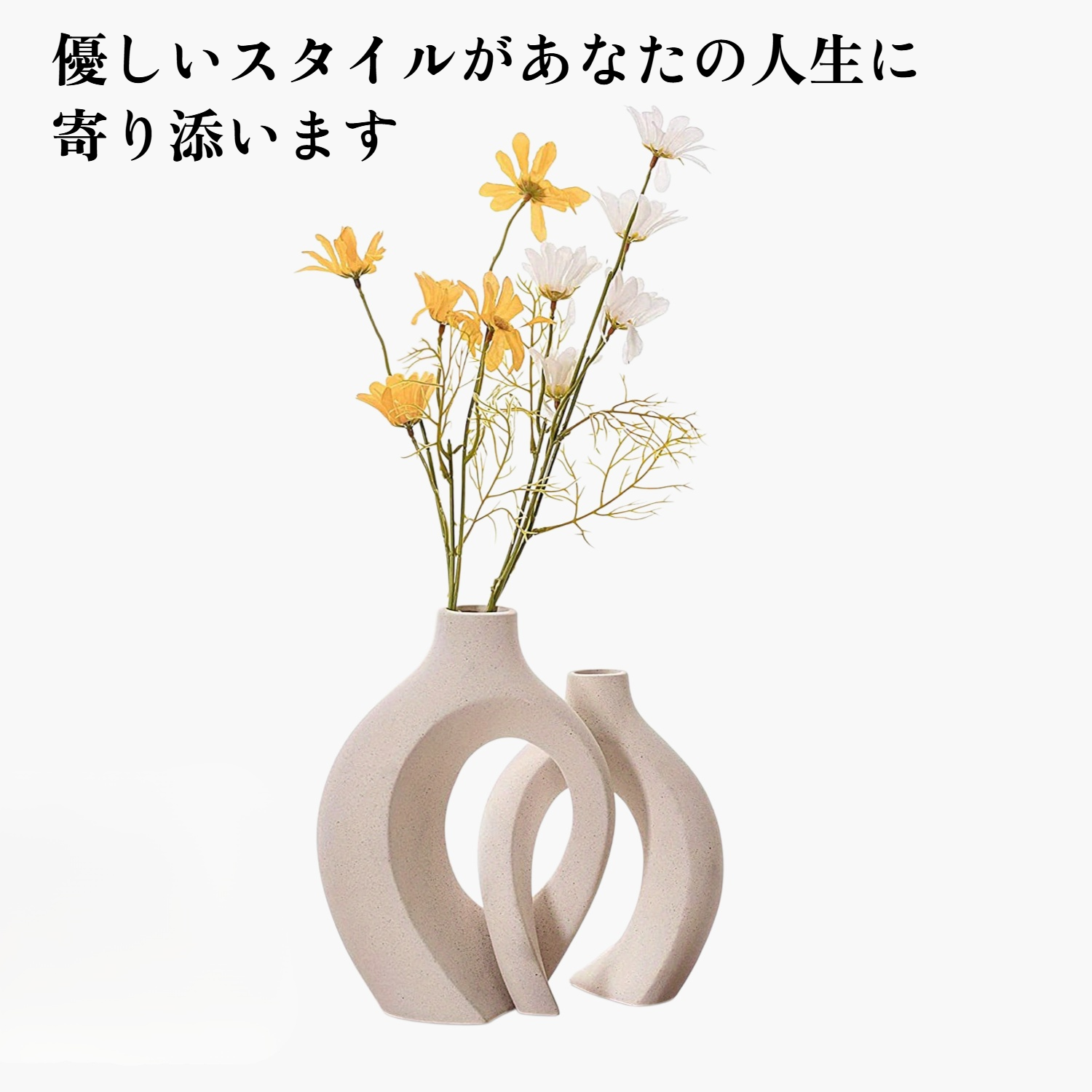 独特な円形デザインの陶器製花瓶。室内の装飾に最適。高品質素材で耐久性抜群。モダンなインテリアに調和。